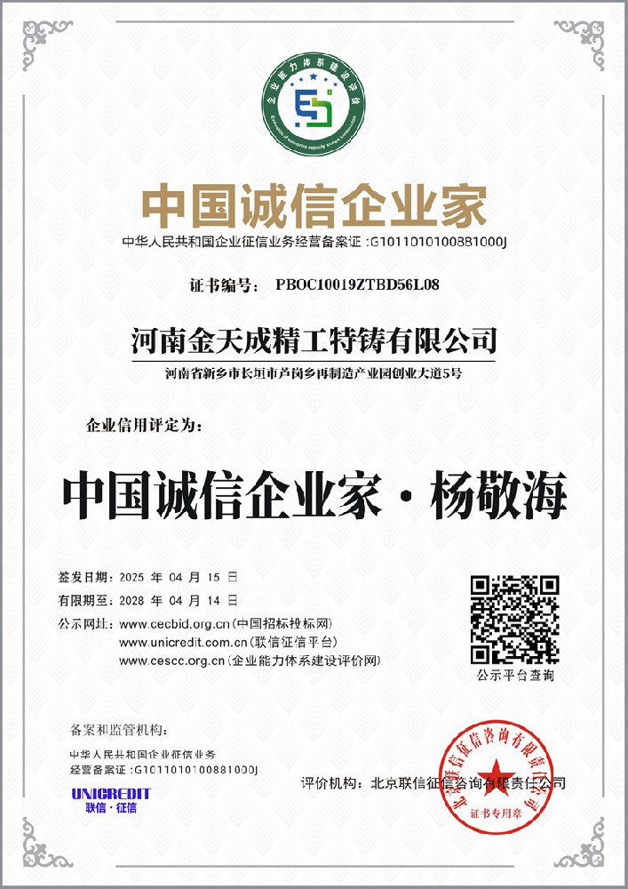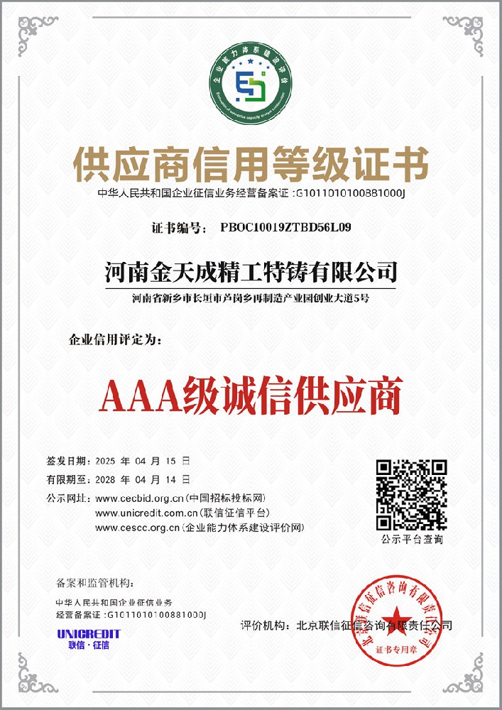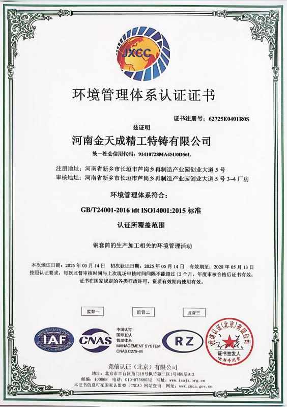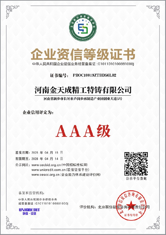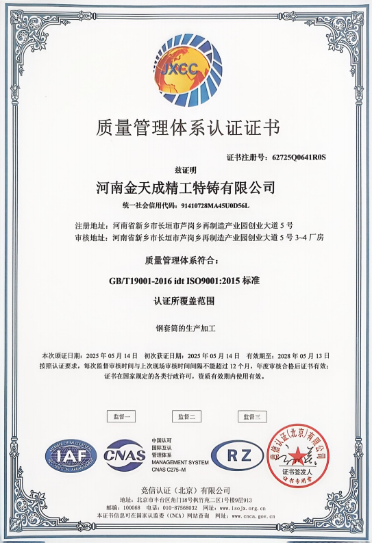河南金天成精工特铸有限公司成立于 2018 年 10 月,注册资本 1500 万元,坐落于河南省新乡市长垣市,是河南省铸锻协会重要成员单位。公司深耕特种铸造领域,以现代化经营理念为引领,致力于为国内外客户提供高品质金属铸造产品与技术服务,凭借过硬的综合实力在行业内树立了良好口碑。